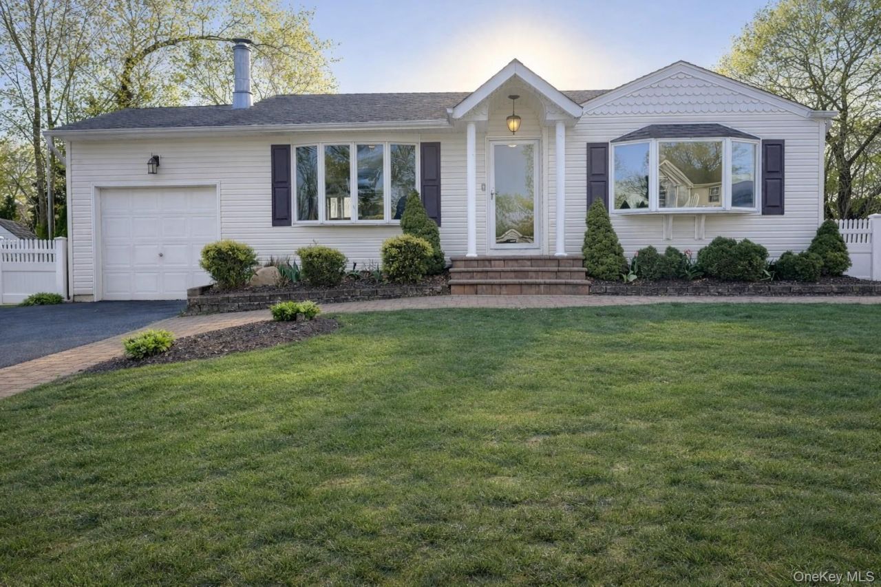 Move right into this diamond-condition 3 Bedroom ranch located in a quiet, well-maintained neighborhood. This beautifully updated home features a sun-drenched eat-in kitchen with white cabinetry, subway tile backsplash, and newer stainless-steel appliances. A side door with built-in privacy blinds leads directly to the paver patio, perfect for outdoor dining and entertaining. The inviting living room with a cozy fireplace creates the perfect gathering space, while the primary bedroom features vaulted ceilings and multiple closets for excellent storage. The home also offers two updated tile bathrooms, hardwood floors, central air, and gas heat for year-round comfort. The finished basement adds incredible bonus space with a bathroom and 2 extra rooms ideal for a home office, gym, guest space, or recreation area. Large laundry room with new flooring add convenience. Approximately 90% of the home was updated in 2018, giving buyers peace of mind with modern finishes throughout. Step outside to enjoy the vinyl-fenced yard, inground sprinklers, paver patio, paver walkway, and double-wide driveway with paver apron, offering great curb appeal and functionality. Prime location just a short walk to Park and Playground; Public transportation and only 5 minutes to the Port Jefferson train; 10 minutes to Stony Brook University, making commuting easy. This move-in ready home truly shows in diamond condition and is a must see.
